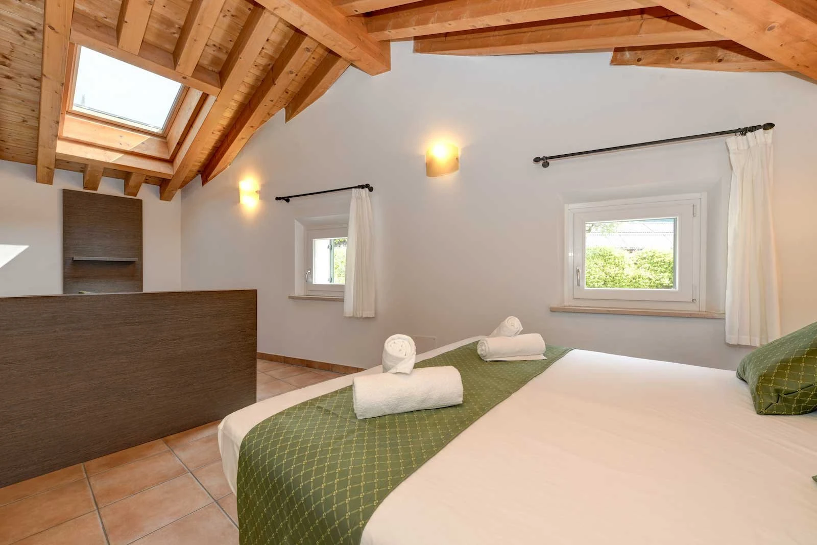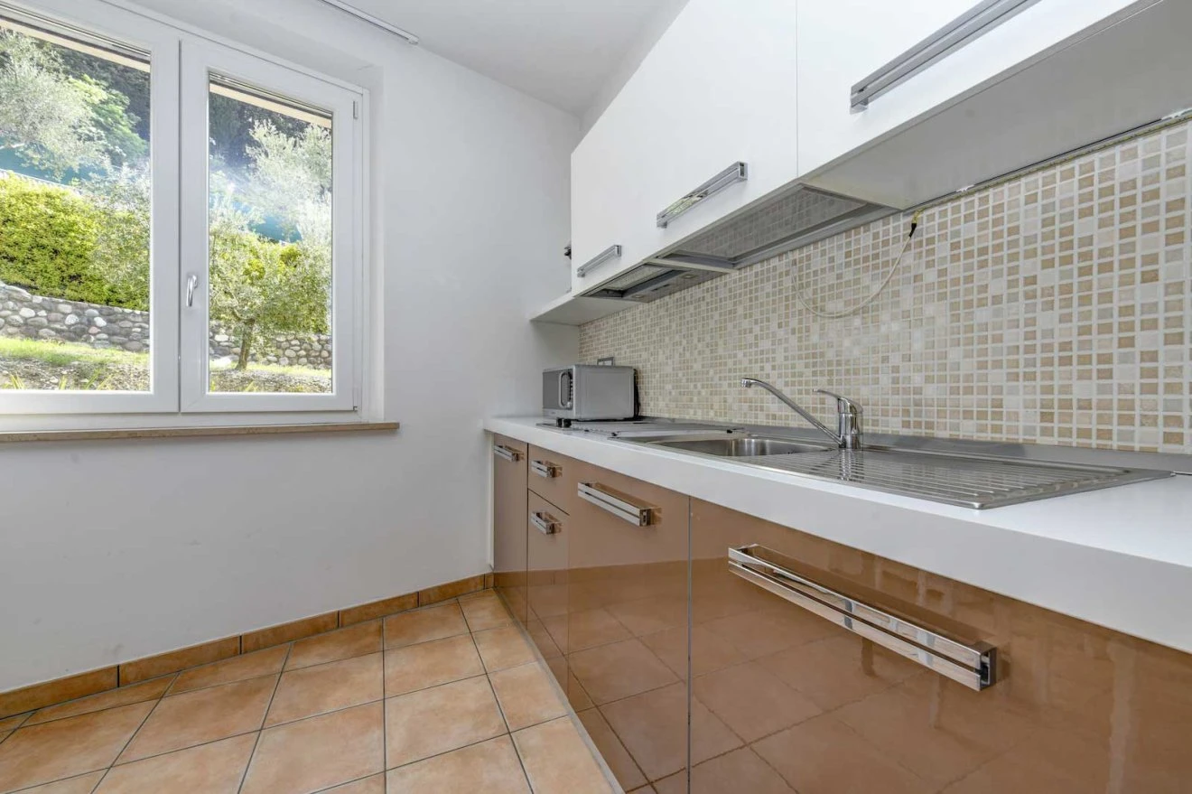Outside, the private garden allows you to relax just a few steps from the pool, surrounded by the peaceful hills of Lake Garda.